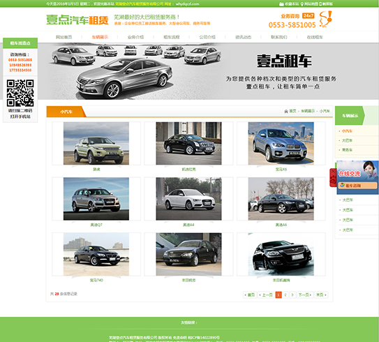 蕪湖壹點(diǎn)汽車(chē)租賃服務(wù)有限公司,自成立以來(lái)堅持以“安全第一、服務(wù)第一、信譽(yù)第一 ”為宗旨,服務(wù)于廣大的蕪湖市民、企事業(yè)單位、外商外資企業(yè)等社會(huì )各界。蕪湖市是經(jīng)濟發(fā)展中的城市,在市運管處的領(lǐng)導和指導下,公司秉承顧客至上的經(jīng)營(yíng)理念,周到服務(wù),踏實(shí)經(jīng)營(yíng)。