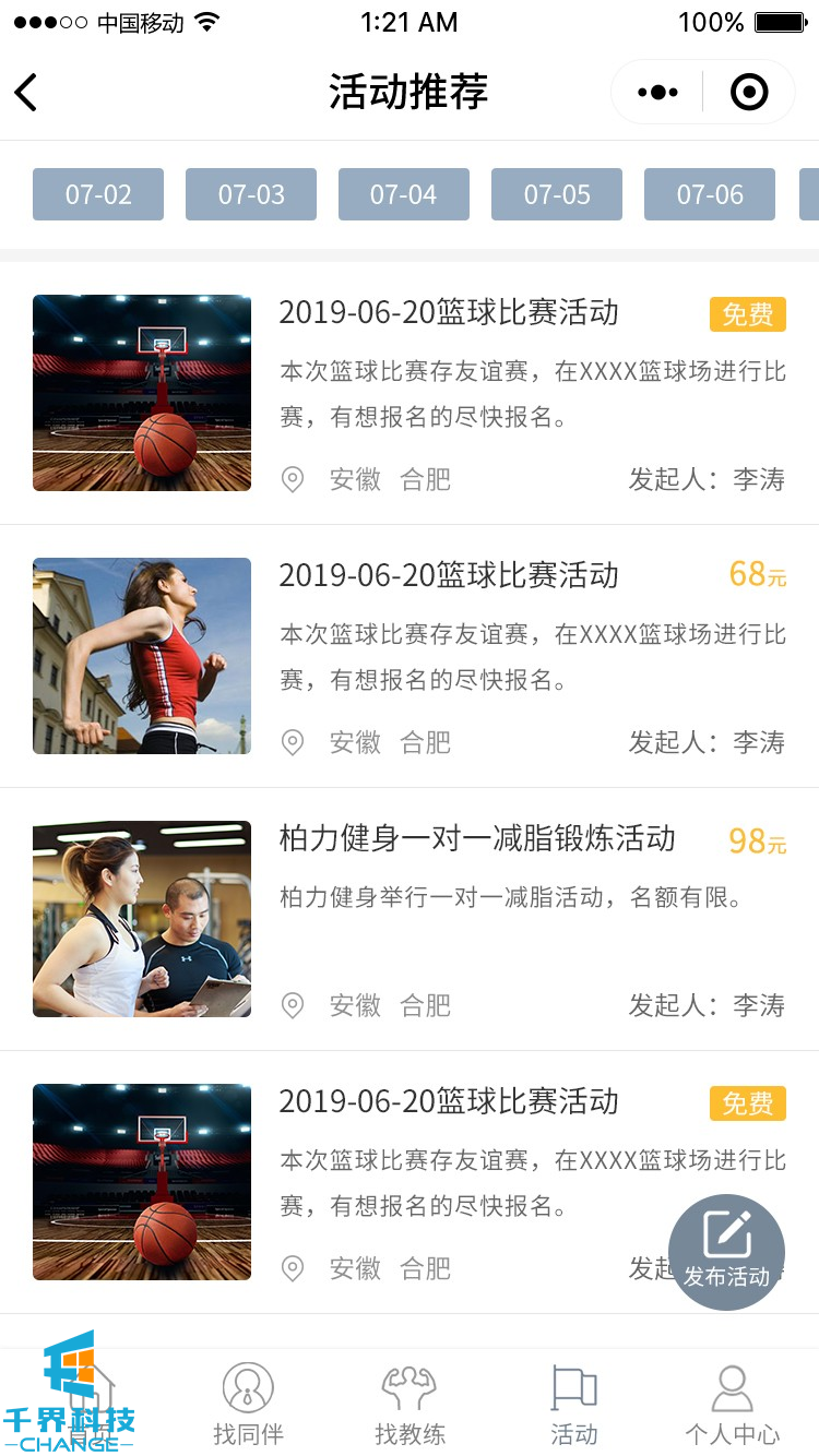 項目名稱(chēng):來(lái)次健身運動(dòng)社交圈 項目類(lèi)型:小程序