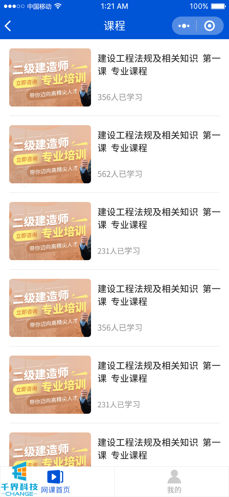 建筑類(lèi)考試+網(wǎng)課培訓小程序