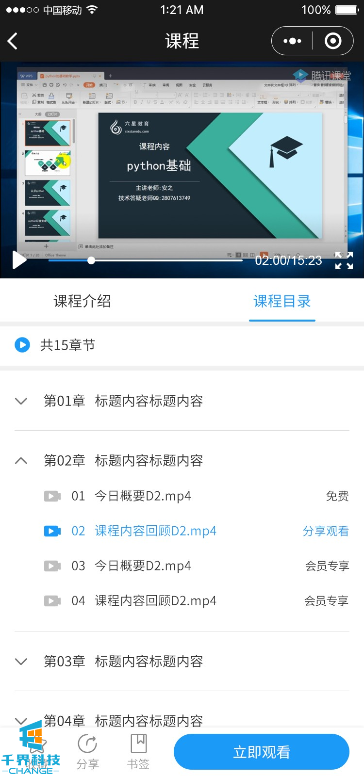 該項目為付費看視頻公眾號 ,包含在線(xiàn)課程、會(huì )員、章節、在線(xiàn)支付等功能