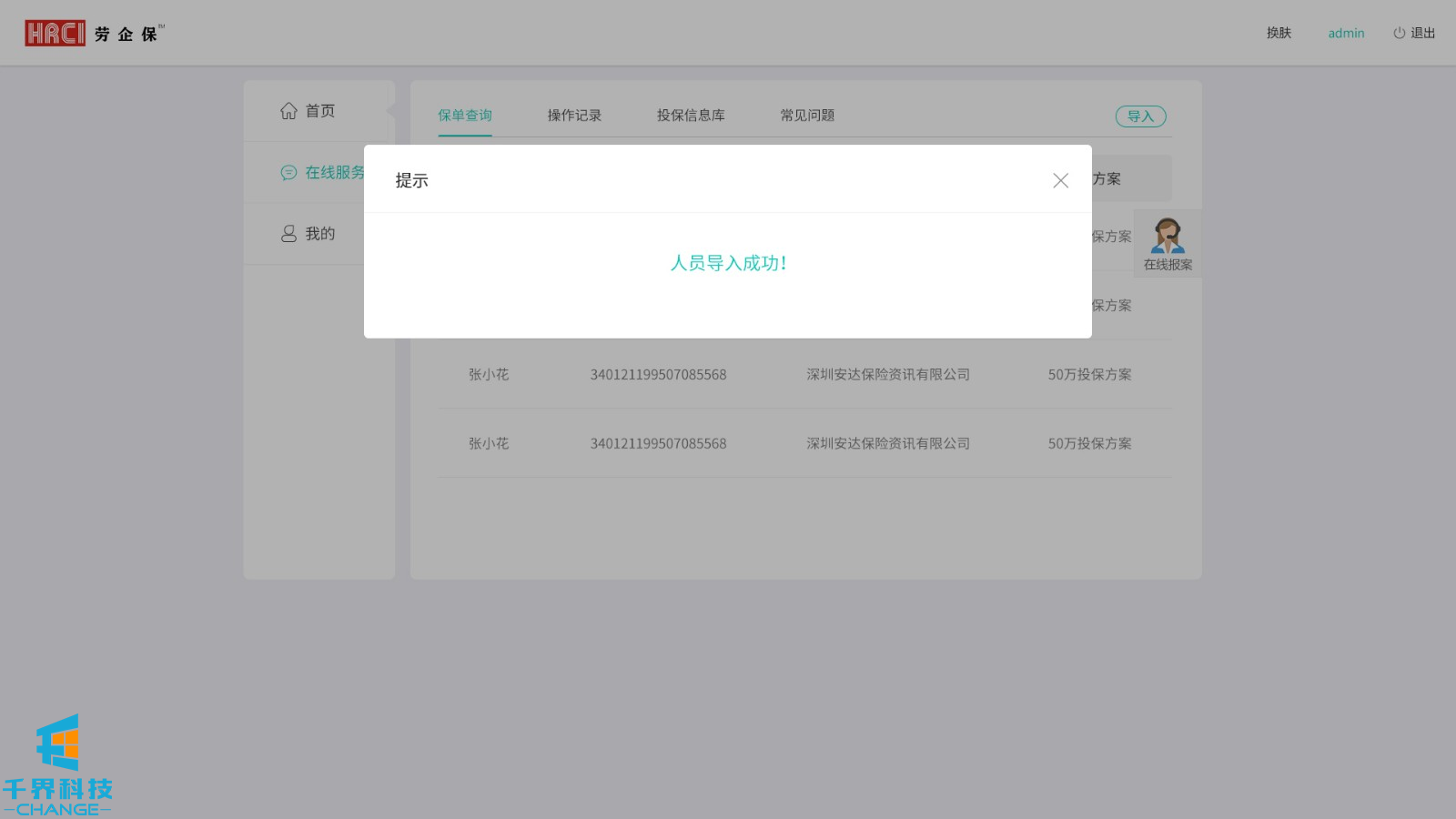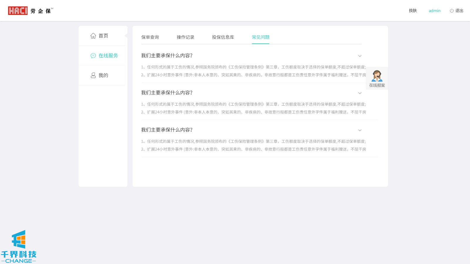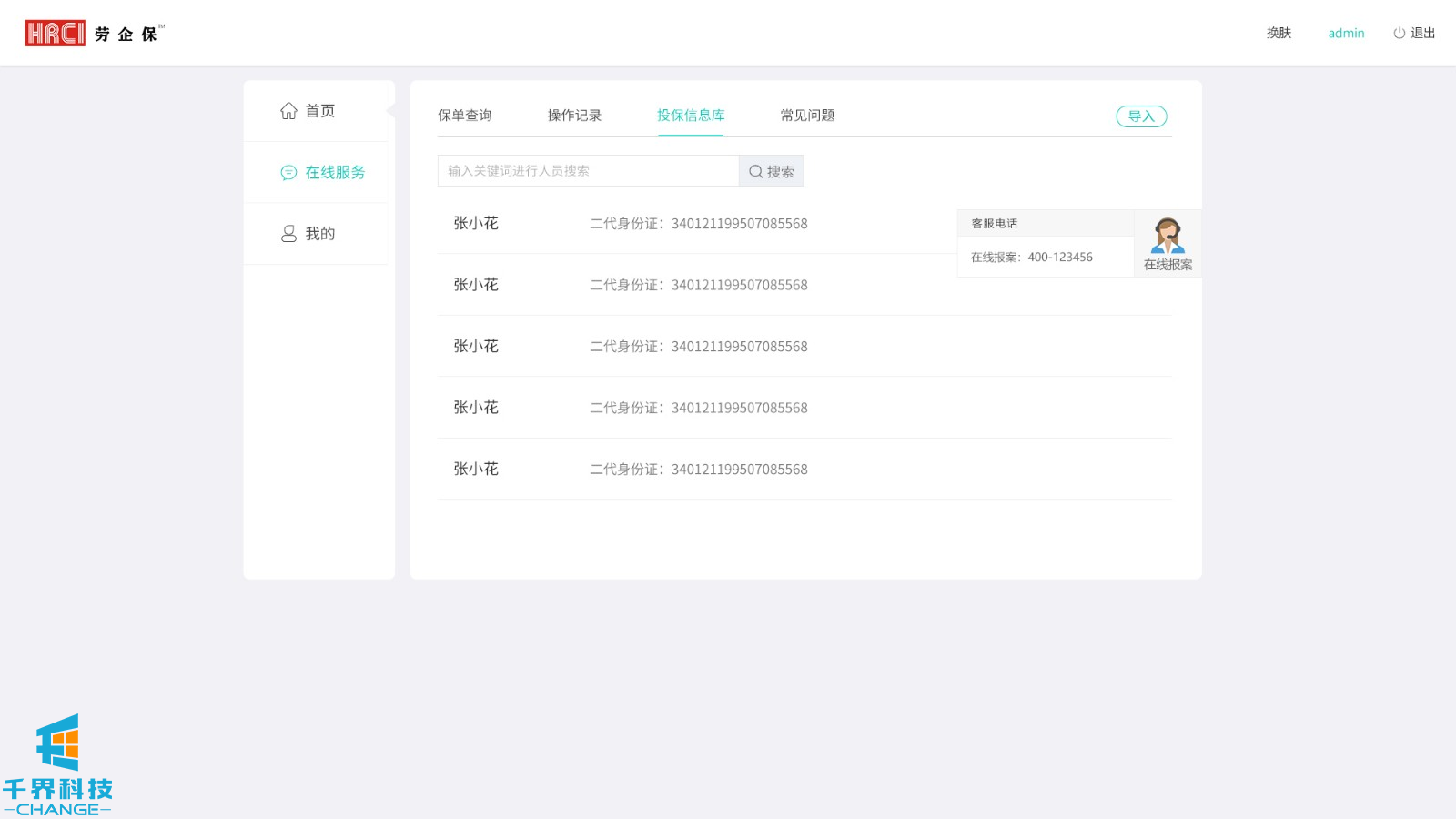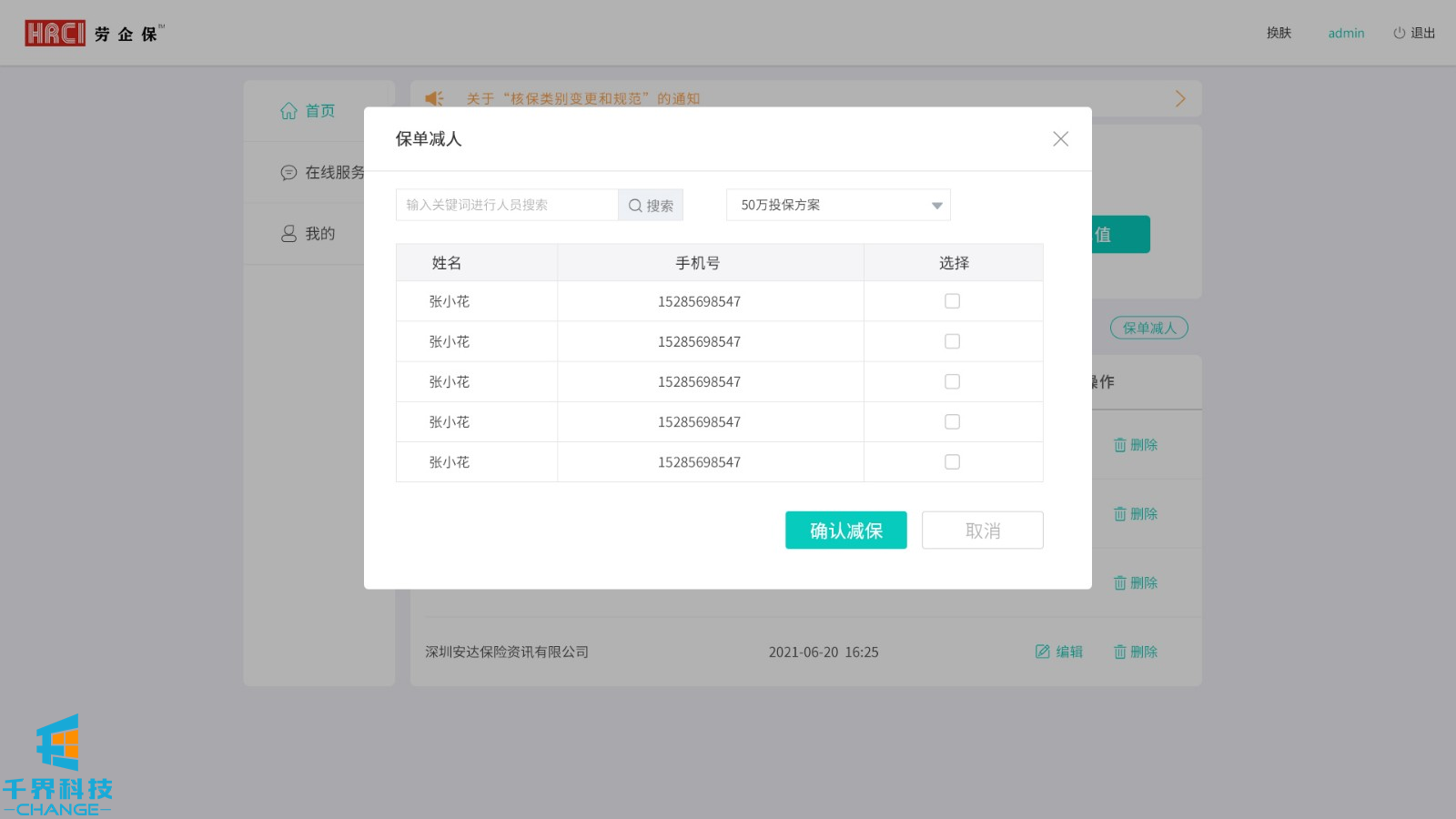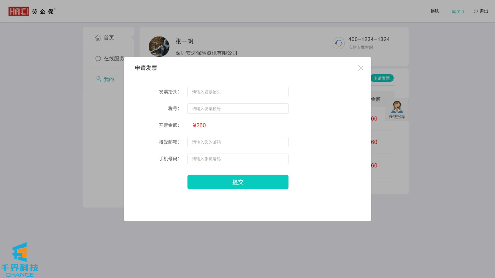 該項目用戶(hù)群體為人力資源公司,后臺創(chuàng )建賬號密碼,用戶(hù)登錄,添加派遣公司,選擇投保方案,為勞工加保、減保,可在線(xiàn)申請發(fā)票。