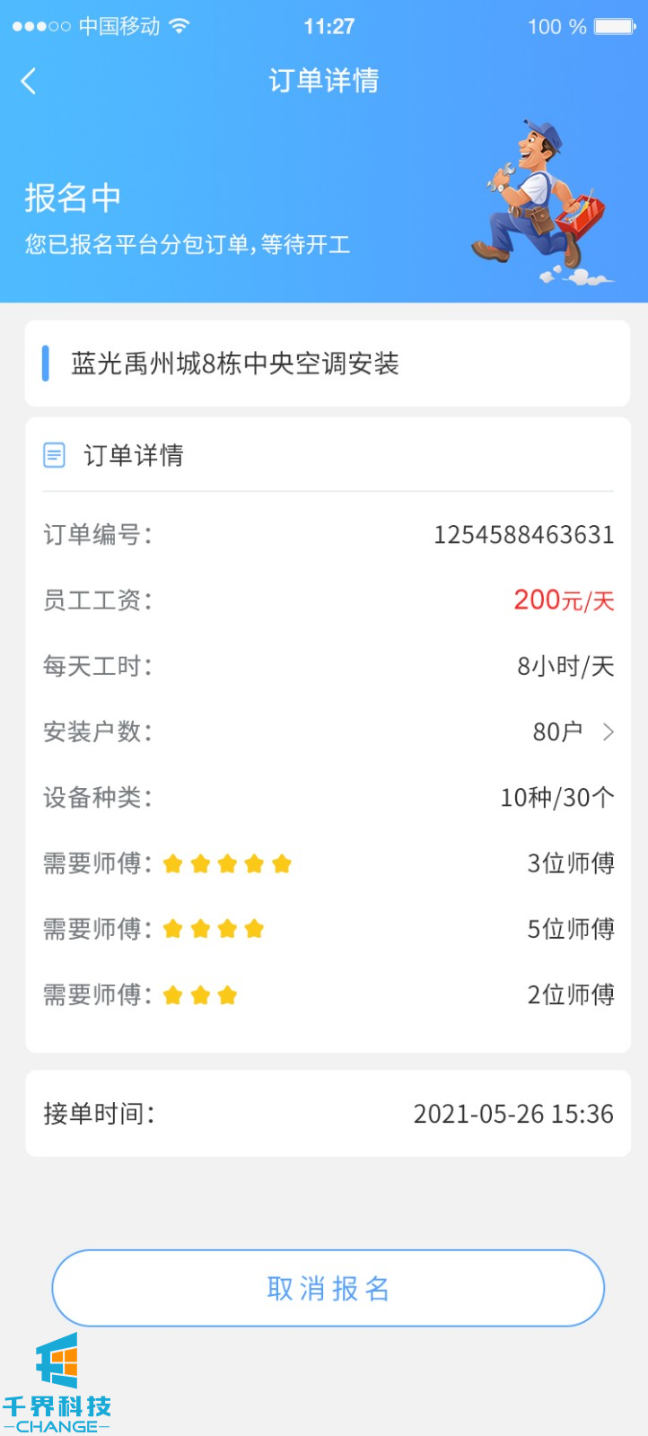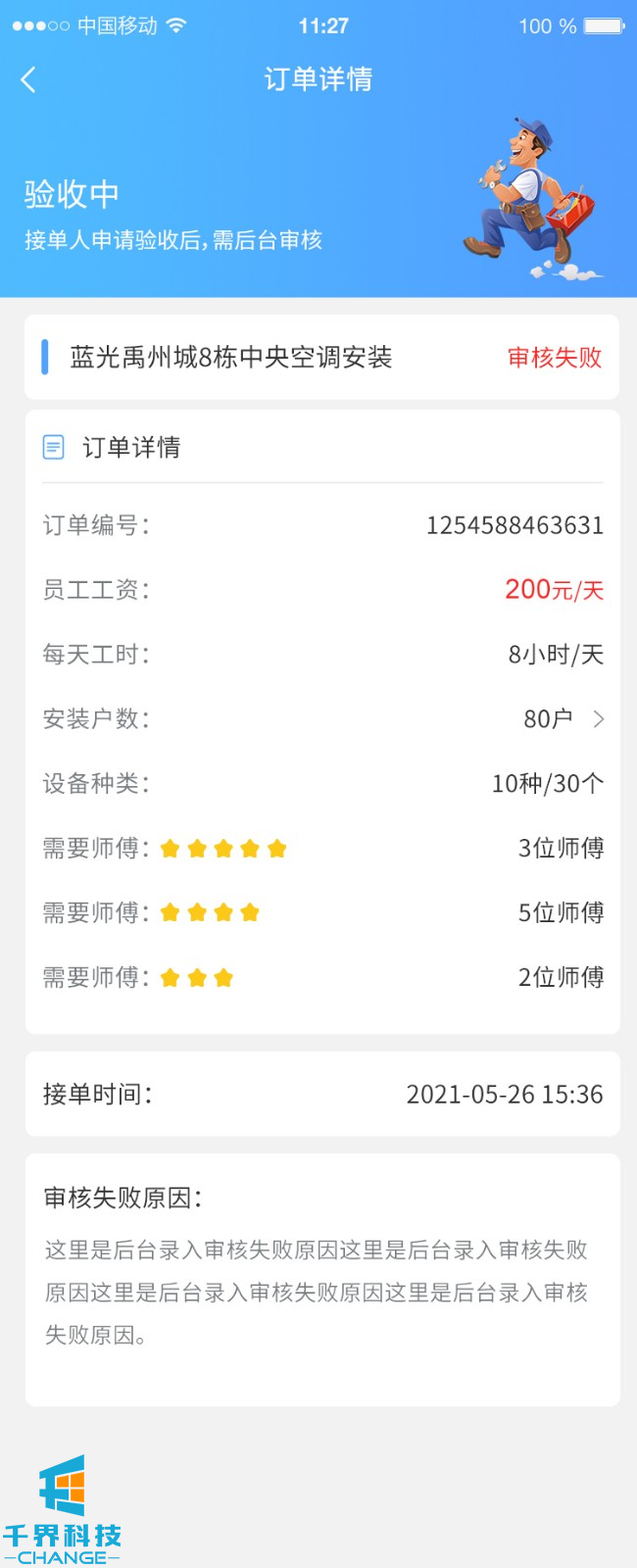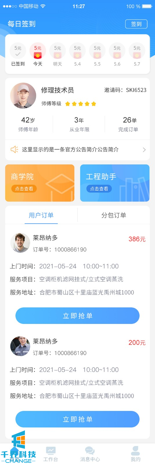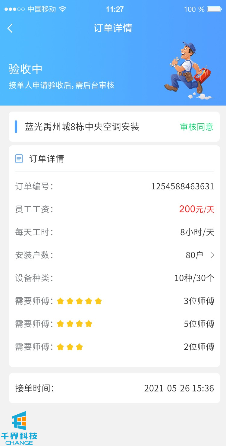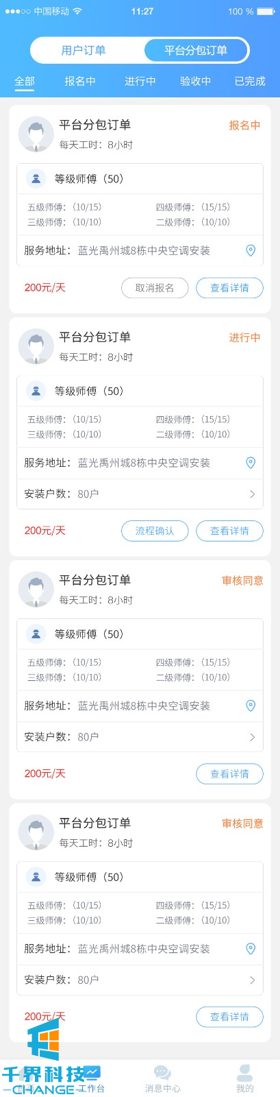 該項目為中央空調在線(xiàn)下單維修分包平臺,平臺主要有2部分業(yè)務(wù),一部分為用戶(hù)下單,師傅接單維修;一部分為平臺發(fā)包,師傅接單進(jìn)行安裝調試