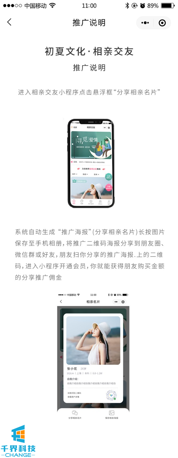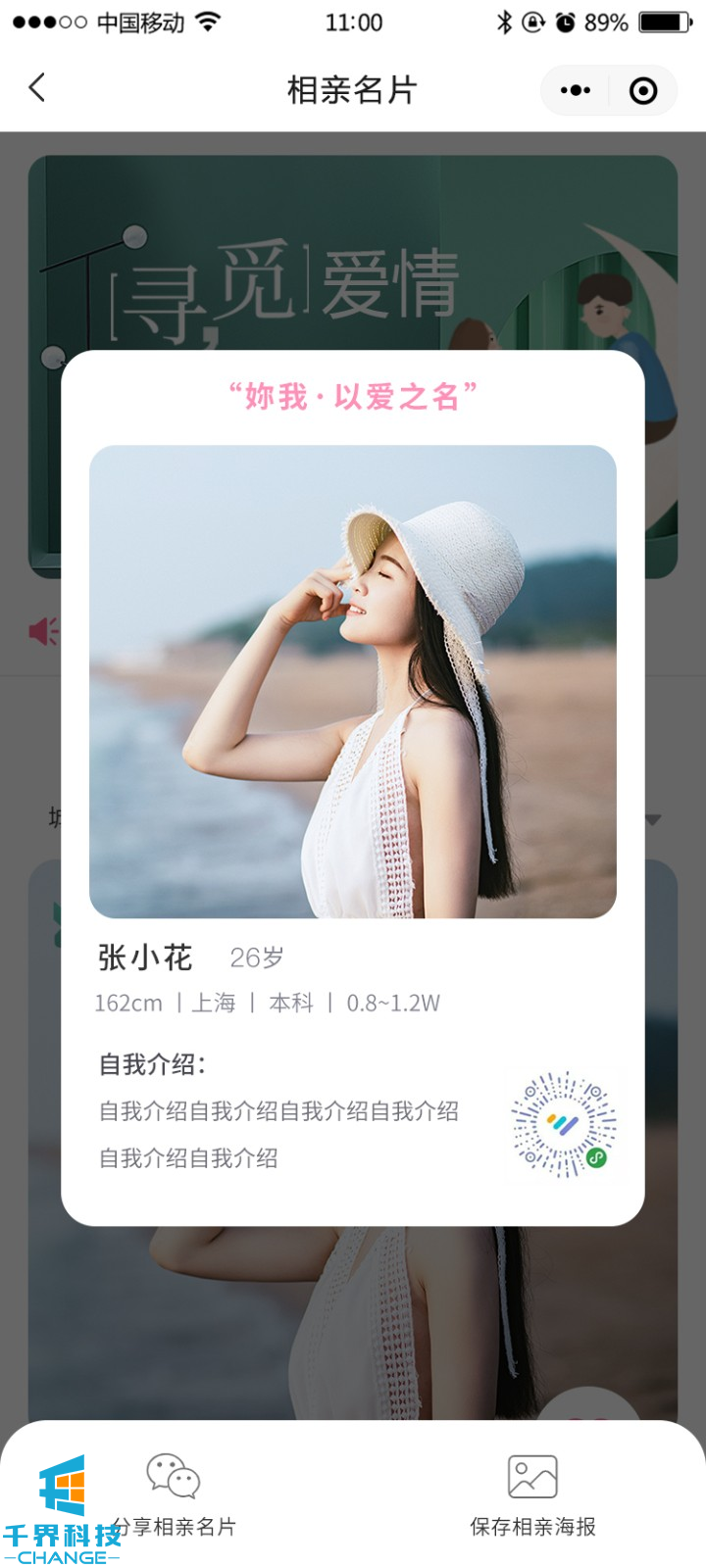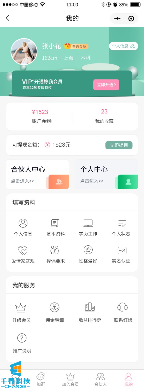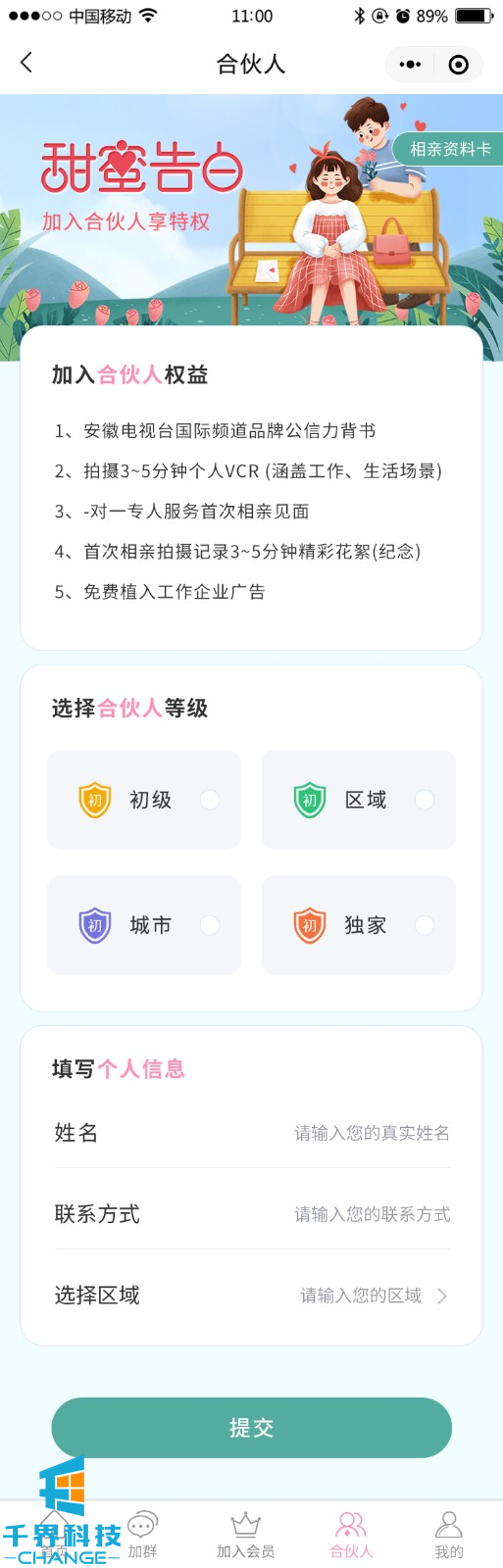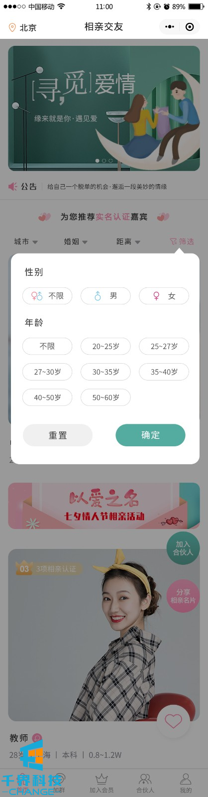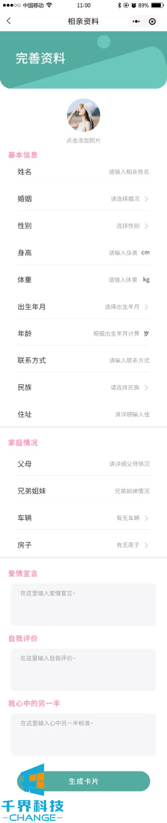 該項目是一個(gè)相親交友平臺,用戶(hù)可以完善信息生成自己的相親卡片,并可以成為平臺分銷(xiāo)商賺取傭金