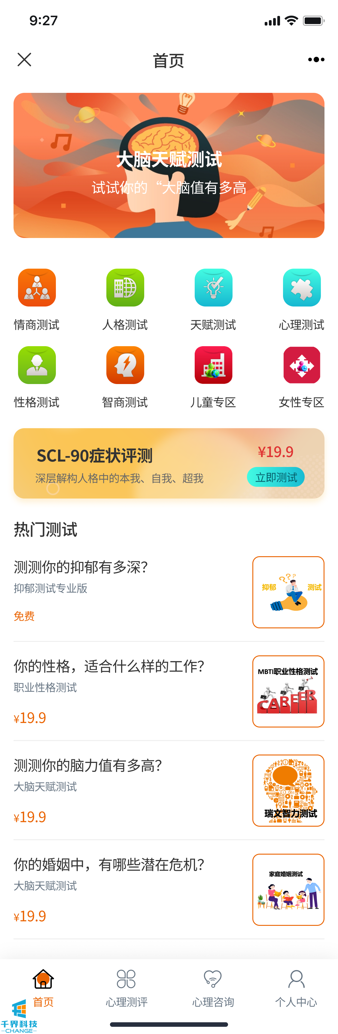 項目名稱(chēng):心理測評公眾號 項目類(lèi)型:公眾號