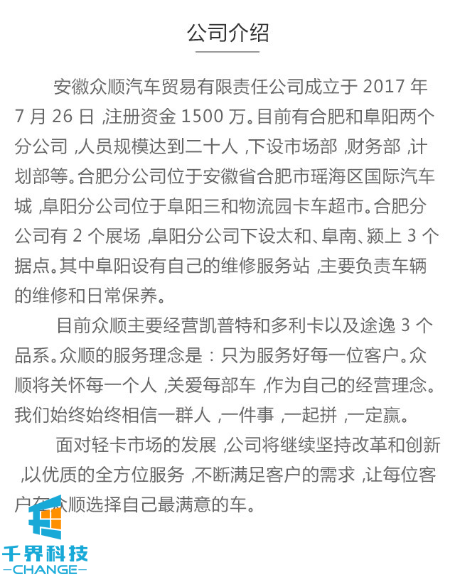 安徽眾順汽車(chē)貿易有限責任公司